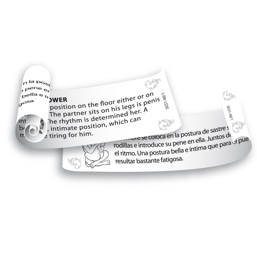 A sensation for you and your partner! Using the tweezers, you pick a scroll from the heart. Which erotic position are you going to try? Will it be the goddess ride, the love boat or the adoration? Accept the challenge and experience pleasure and intimacy together.